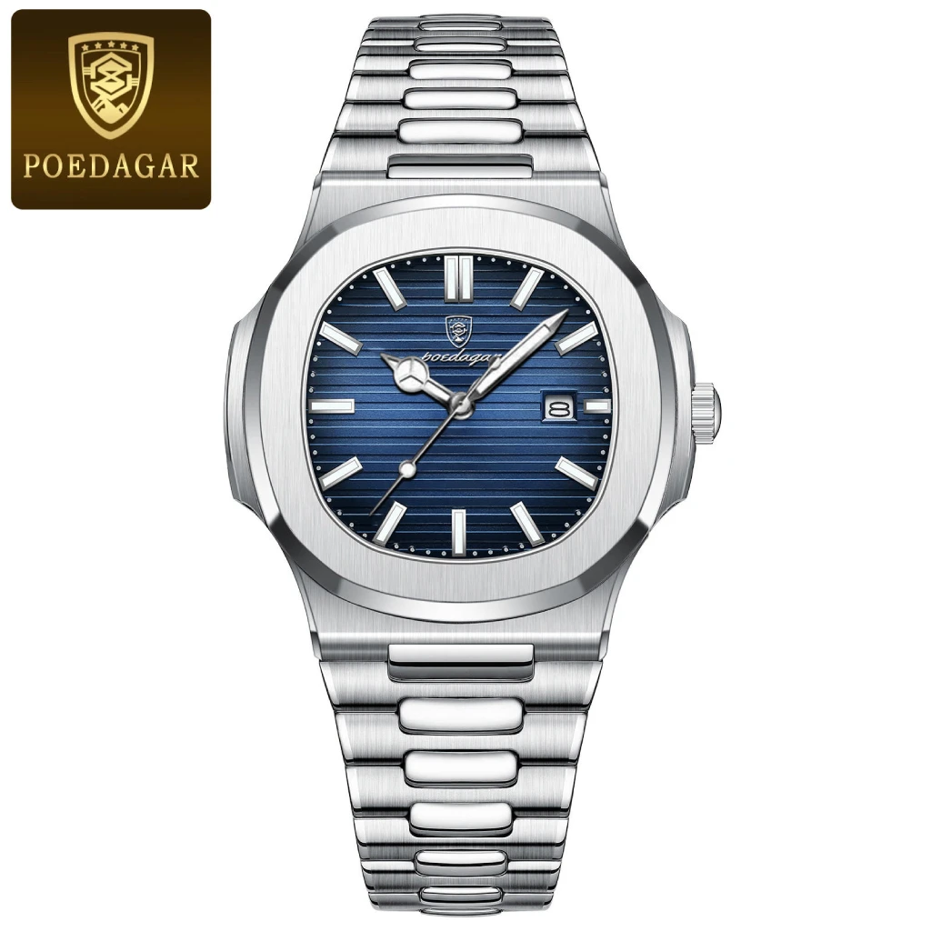 POEDAGAR 613 Fashion Stainless Steel Men’s Watch (Silver Blue)